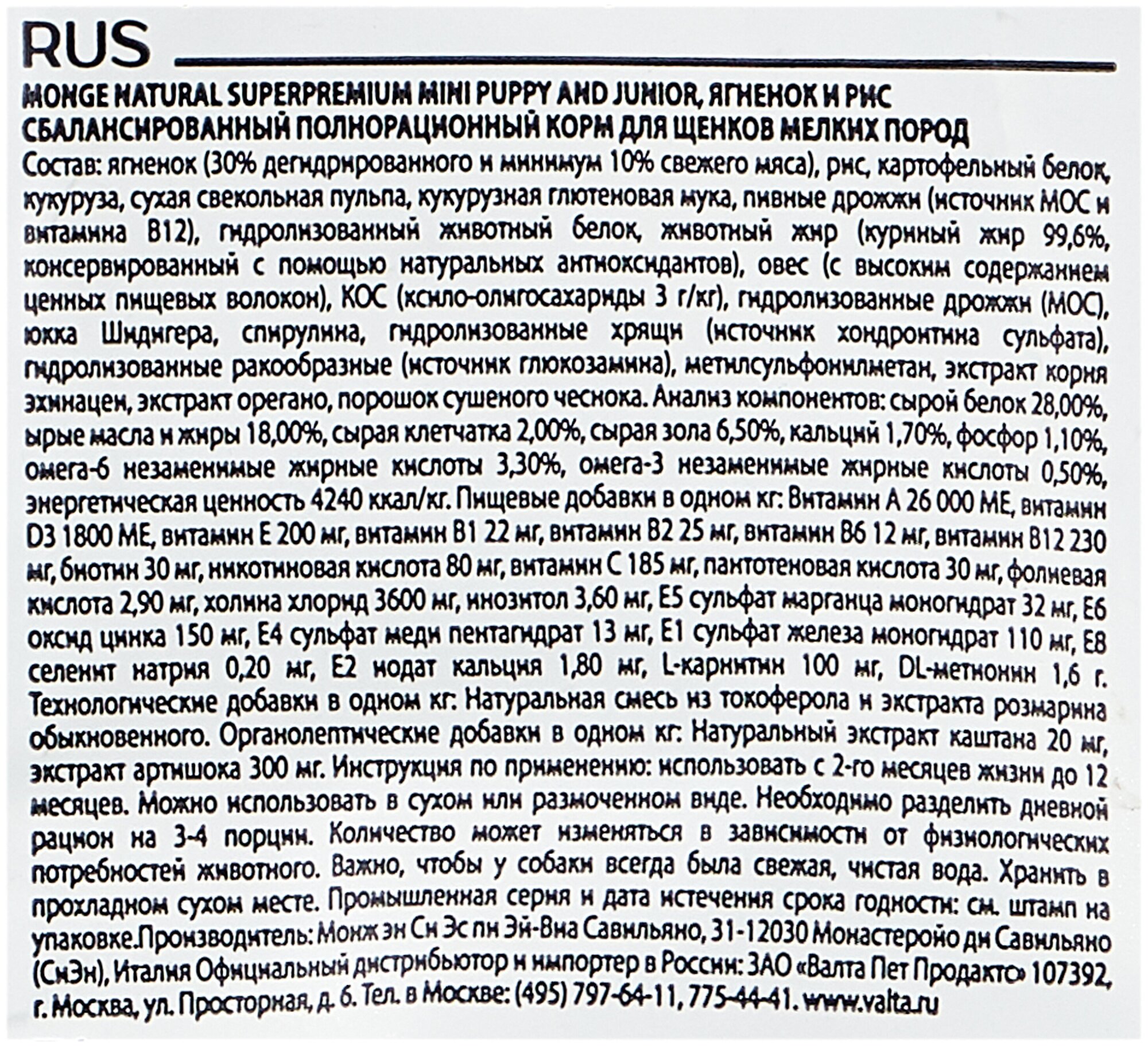 Корм для собак Monge Dog Monoprotein Mini корм для щенков мелких пород ягненок с рисом и картофелем 800г