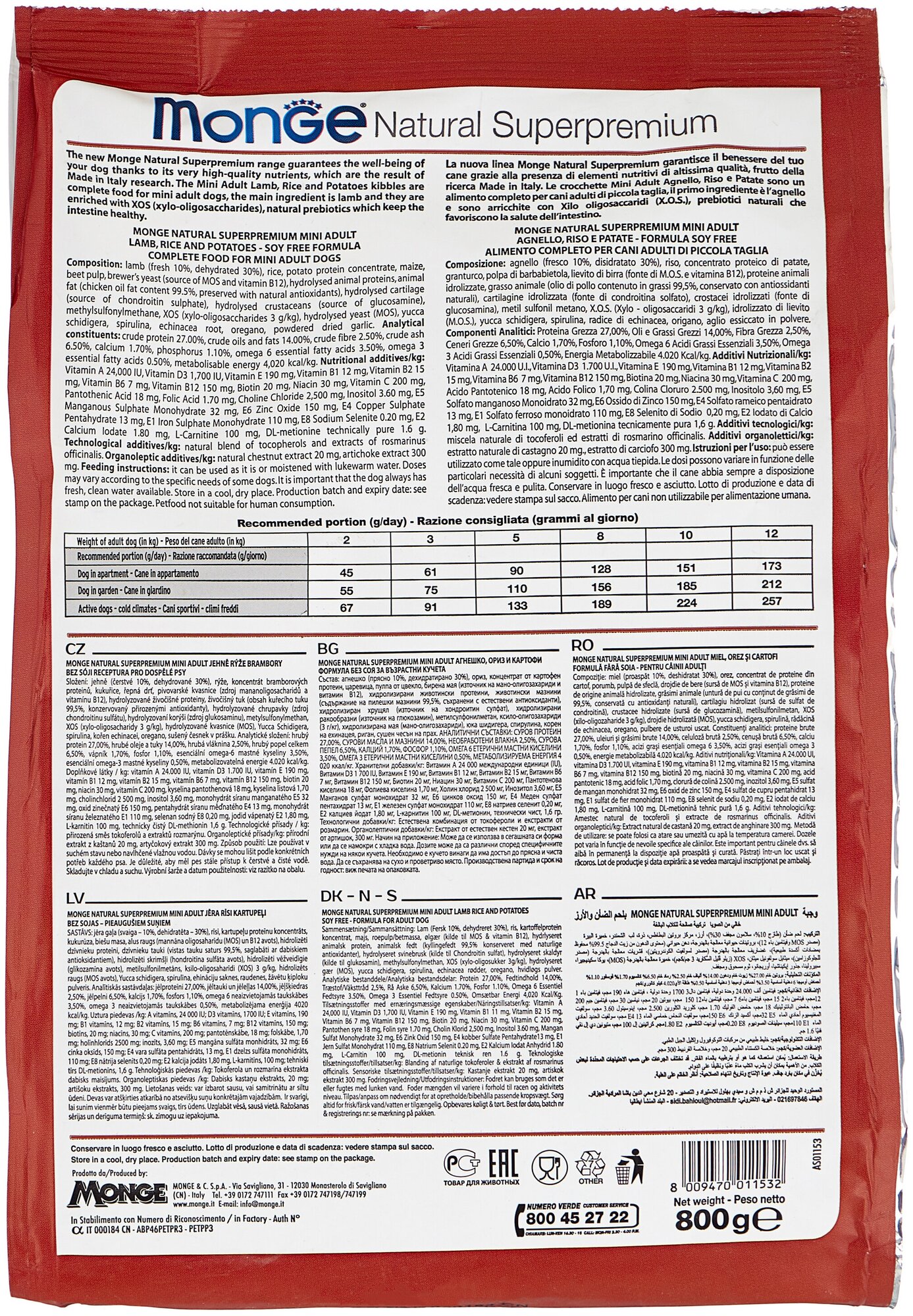 Лучшие цены. Сухой корм Monge Adult Small Lamb, Rice and Potatoes с мясом ягнёнка, рисом и картофелем произведён для взрослых (старше 1 года) мелких собак. Подходит для питания животных с чувствительным пищеварением. Monge Natural Superpremium — итальянские корма суперпремиум класса для кошек и собак. Более 50 лет сотрудничества экспертов в области питания и разведения собак создали широкую линейку рационов высочайшего качества для самых разных питомцев. Магазины в вашем городе.