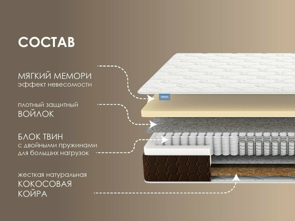 Матрас Dimax Твин Мемо хард 140х186 45 178 ₽ Подробнее