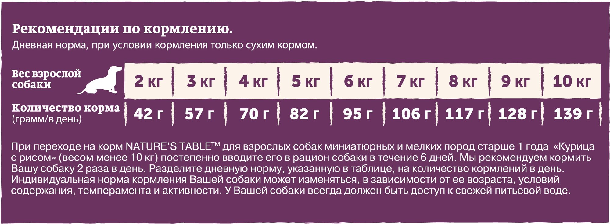 Лучшие цены. Полноценный сбалансированный рацион с курицей и рисом для взрослых собак маленьких пород. Натуральный и полезный рацион Nature's Table для взрослых собак маленьких пород со вкусом курицы содержит на 100 % натуральные ингредиенты самого высокого качества, получаемые от проверенных поставщиков. Ключевые особенности: ингредиент № 1 — курица — источник животного белка с высокой усвояемостью, является основой здорового рациона собаки подсолнечное масло и рыбий жир — источники омега-3 и омега-6 кислот, витамины А. Магазины в вашем городе.