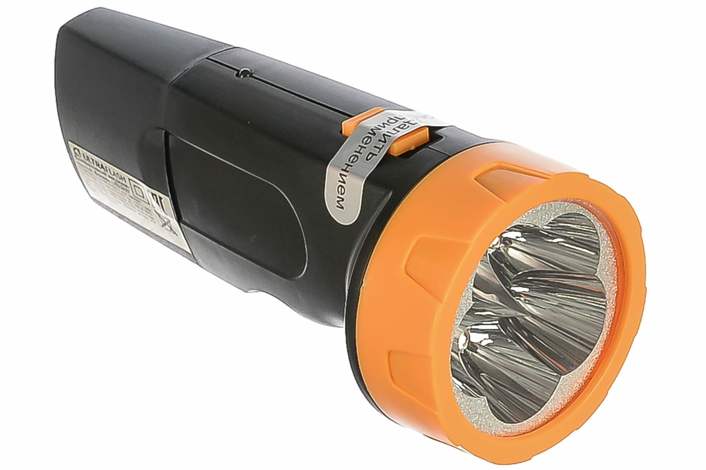 Лучшие цены. Фонарь LED 3827 (аккум. 220В черн./желт. 5 LED SLA пласт. коробка) Ultraflash Аккумуляторный фонарь Ultraflash, LED3827 рекомендуется для применения профессионалам, работающим в условиях затемнения долгое время. Максимальное время работы после полного заряда аккумулятора - 6 часов. Емкий свинцово-кислотный аккумулятор имеет низкий коэффициент саморазряда. Оснащен открепительной крышкой, которая скрывает сетевую вилку для зарядки напрямую от сети в 220В. Магазины в вашем городе.