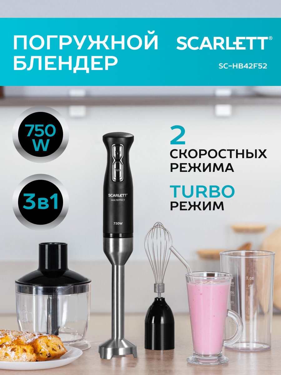 Миксеры и блендеры Погружной блендер Scarlett, SC-HB42F52, черный, измельчитель, турбо,