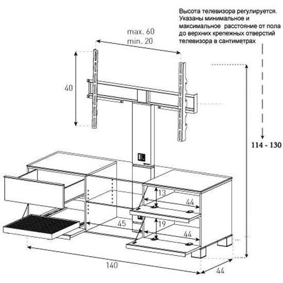 Тумба под телевизор Sonorous MD 8340 B HBLK WHT