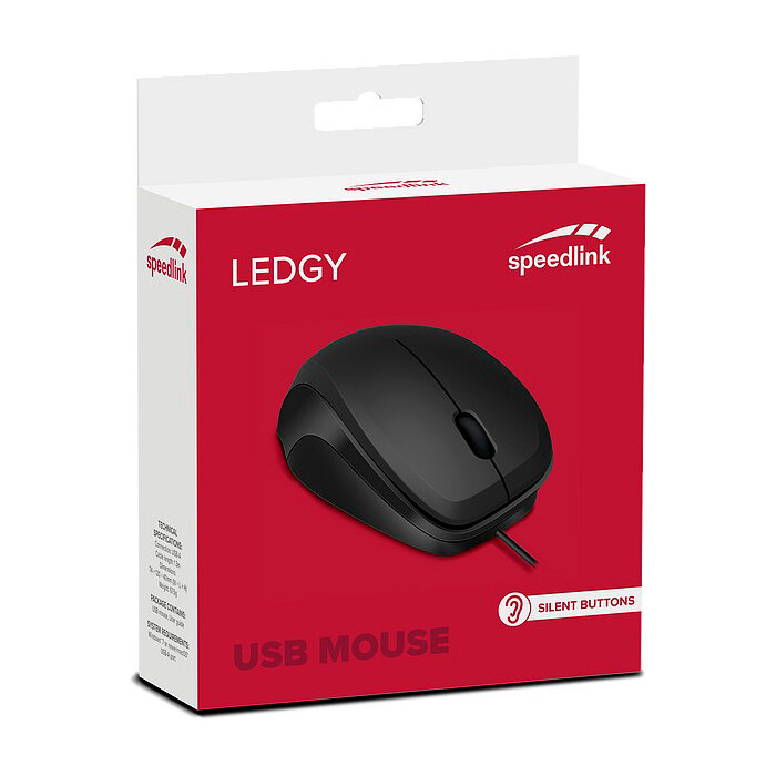 Мышки Мышь проводная Speedlink Ledgy Mouse USB, Silent, black (SL-610015-BKBK)
