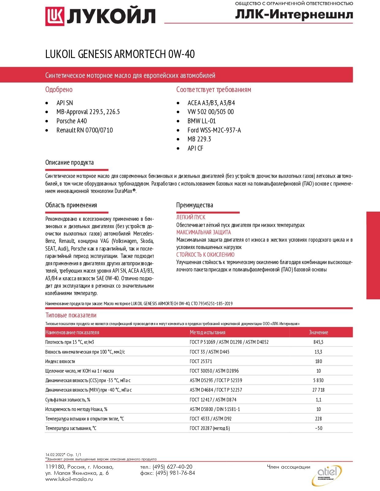 Лучшие цены. LUKOIL GENESIS ARMORTECH 0W-40 – всесезонное полностью синтетическое моторное масло последнего поколения для применения в двигателях современных европейских легковых, легких грузовых автомобилей и микроавтобусов. LUKOIL GENESIS ARMORTECH 0W-40 разработано с использованием полностью синтетических базовых масел на полиальфаолефиновой (ПАО) основе с применением инновационной технологии DuraMax®. Магазины в вашем городе.