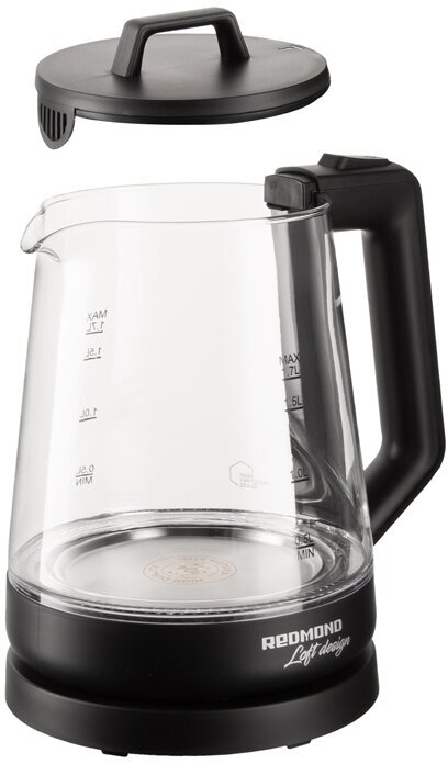 Лучшие цены. REDMOND RK-G191 — стильный и практичный электрический чайник со светодиодной подсветкой. В дизайне модели гармонично сочетаются три фактуры — прозрачное стекло, матовый черный пластик и элементы, имитирующие натуральное дерево. Чайник станет идеальным аксессуаром для кухни в стиле лофт, модерн, эко или контемпорари. Стеклянная колба Колба чайника выполнена из экологичного жаропрочного стекла, которое отлично переносит высокую температуру, и при нагреве не выделяет посторонних запахов и не портит вкус воды. Магазины в вашем городе.
