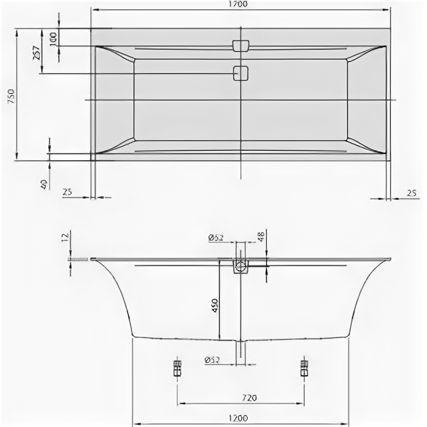 Лучшие цены. Коллекция: Squaro; Тип: ванна; Условный размер: 170х75; Форма: прямоугольная; Угловая конструкция: нет; Длина: 170 см; Ширина: 75 см; Высота: 64.5 см; Объем: 165 л; Подголовник: нет, приобретается отдельно; Ручки: нет, установка не предусмотрена; Слив-перелив: есть, в комплекте; Расположение перелива: по центру; Антискользящее покрытие: нет; Сидячая ванна: нет; Количество человек: 2; Тип монтажа: пристенная; Установка: на ножки; Стиль: современный стиль (Hi-Tech). Магазины в вашем городе.