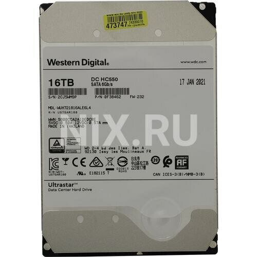 Жесткий диск 3.5" 16TB Sata Iii, 512 Mb, 7200 rpm WD Ultrastar DC HC550 (0f38462) 0F38462