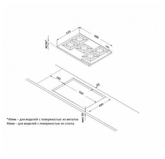 | Размеры для встраивания (ШхГ) | 770x480 мм |