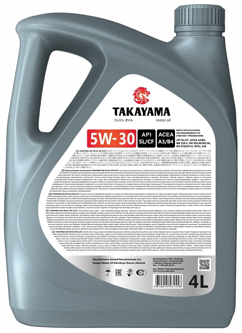 TAKAYAMA Рњр°Сѓр»Рѕ Рјрѕс‚Рѕсђрѕрѕрµ Сѓрёрѕс‚Рµс‚Рёс‡Рµсѓрєрѕрµ "Motor Oil 5W-30", Api Sl/Cf 4Р» (Рїр»Р°Сѓс‚Рёрє) 3 619 ₽ Подробнее