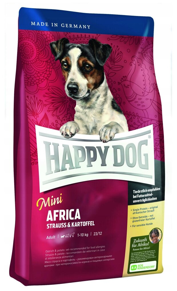 Лучшие цены. Happy dog сухой корм африка для собак мелких пород весом до 10 кг с мясом страуса 60123, 0,300 кг (2 шт). Магазины в вашем городе.
