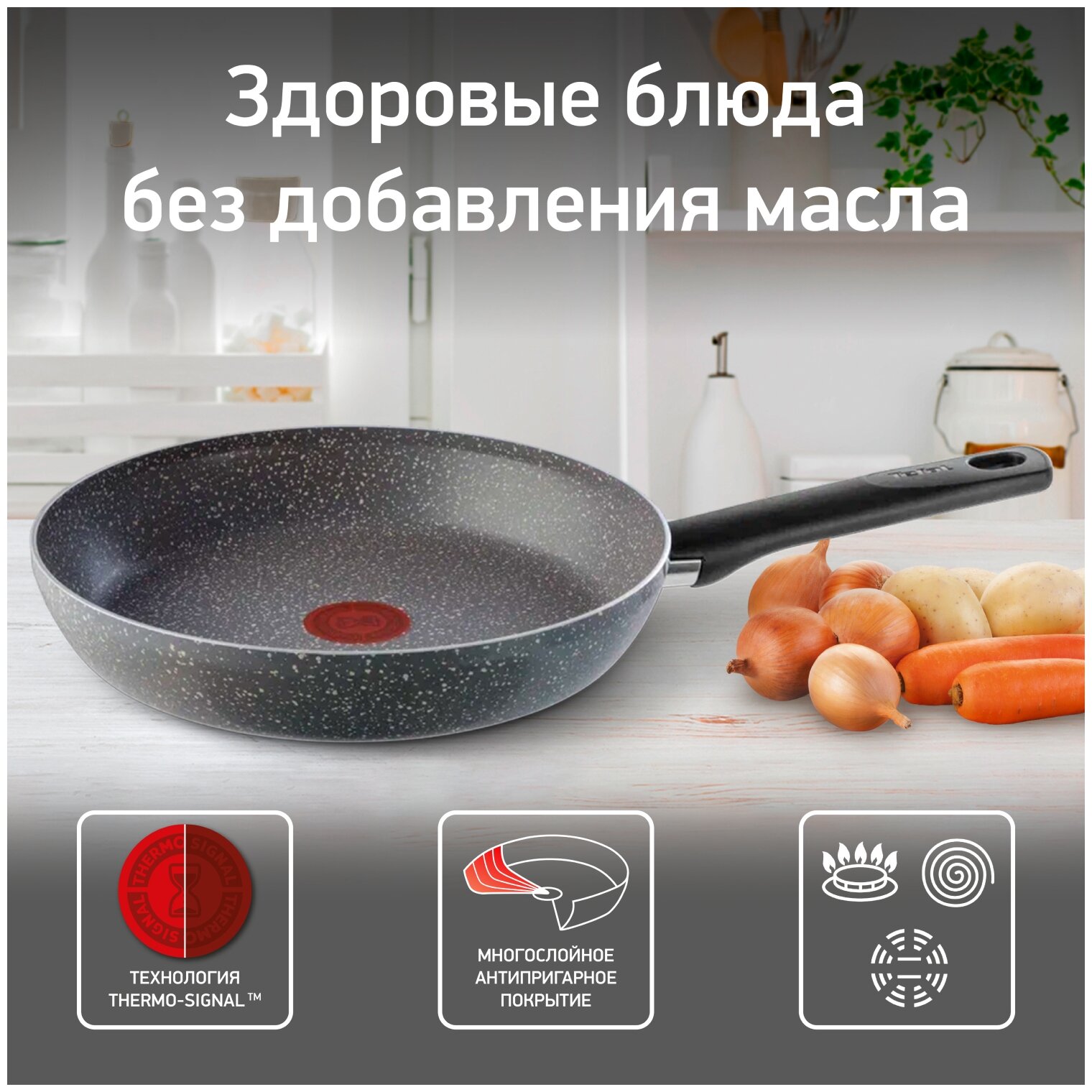 Сковорода Tefal Natural Cook 04211126, 26см, без крышки, серый [9100046095] 1 499 ₽ Подробнее