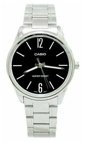 Лучшие цены. Мужские наручные часы Casio MTP-V005D-1B кварцевые, приводящиеся в действие с помощью батарейки. Корпус стальной с черным циферблатом и минеральным стеклом, которое еще называется ударопрочным, браслет стальной. Модель Casio MTP-V005D-1B обладает степенью влагостойкости 50 м (5 АТМ), в этом случае разрешено кратковременное погружение в воду, для плавания рассмотрите модели от 100 м (10 АТМ). Циферблат подсвечивается подсветкой от люминесцентных элементов, накапливающих заряд от света. Магазины в вашем городе.