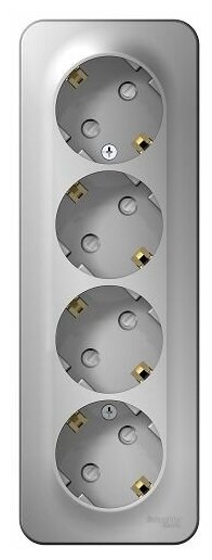 Розетка Systeme Electric (schneider Electric) SCHNEIDER ELECTRIC BLANCA 4-я с заземл. со шторк. Изол.ПЛ., 16А, 250В, Алюминий, BLNRA011413