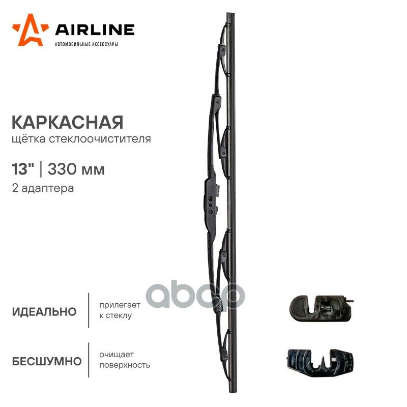 AIRLINE / awbk330 / Щетка стеклоочистителя 330 мм (13) каркасная, 2 адаптера