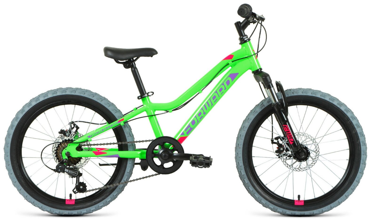 Велосипеды Велосипед подростковый горный с колесами 20" Forward Twister 20 2.0 D AL рама 10" зелено-фиолетовый