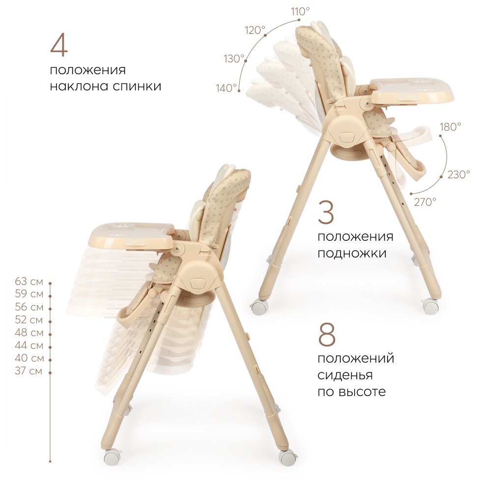 Стульчик для кормления Happy Baby WILLIAM PRO, до 20 кг, 4 поворотных колеса, бежевый 13 322 ₽ Подробнее