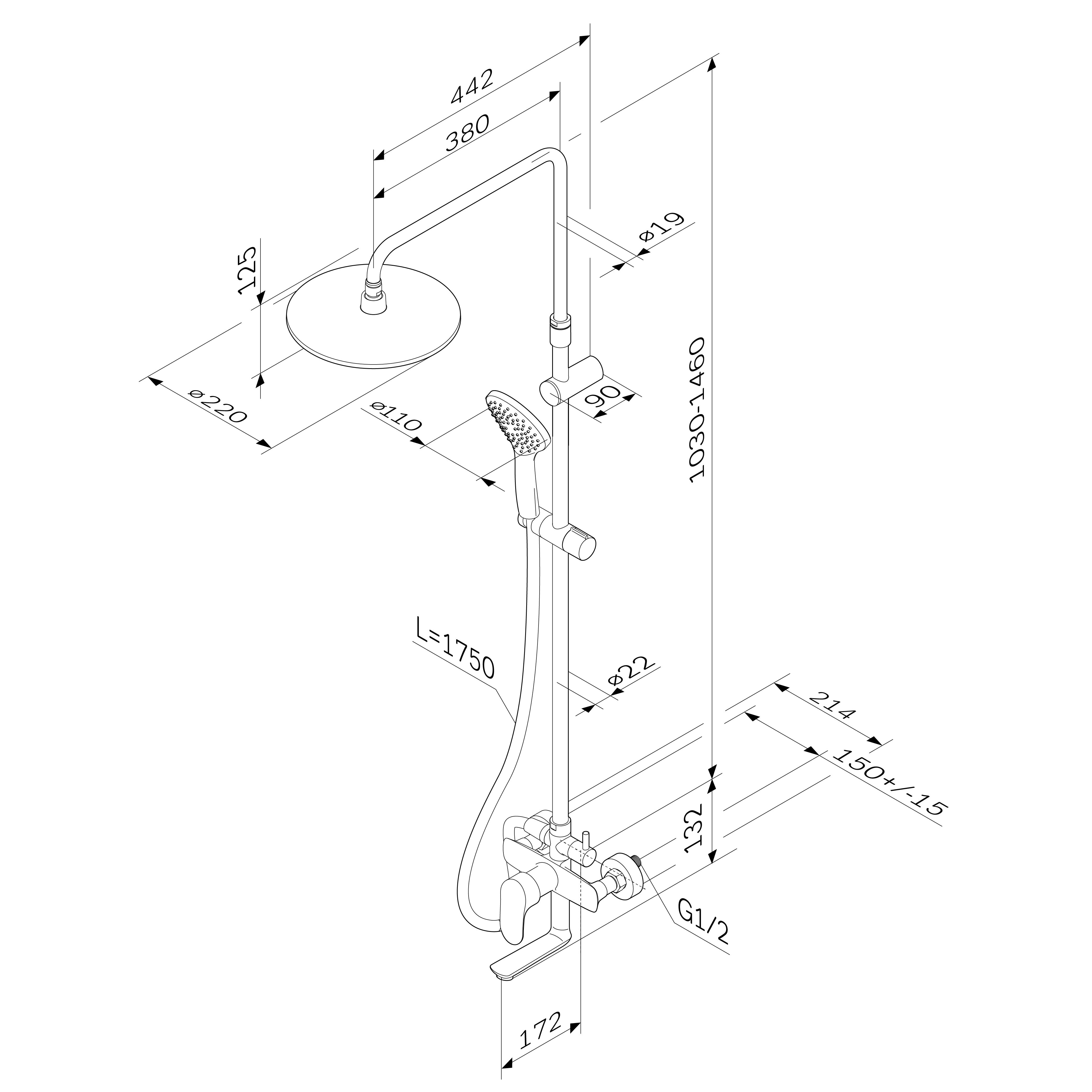 | Комплектация | ручной душ (душевая лейка) / верхний душ (тропический) / смеситель / стойка / штанга / душевой шланг / крепление ручного душа |