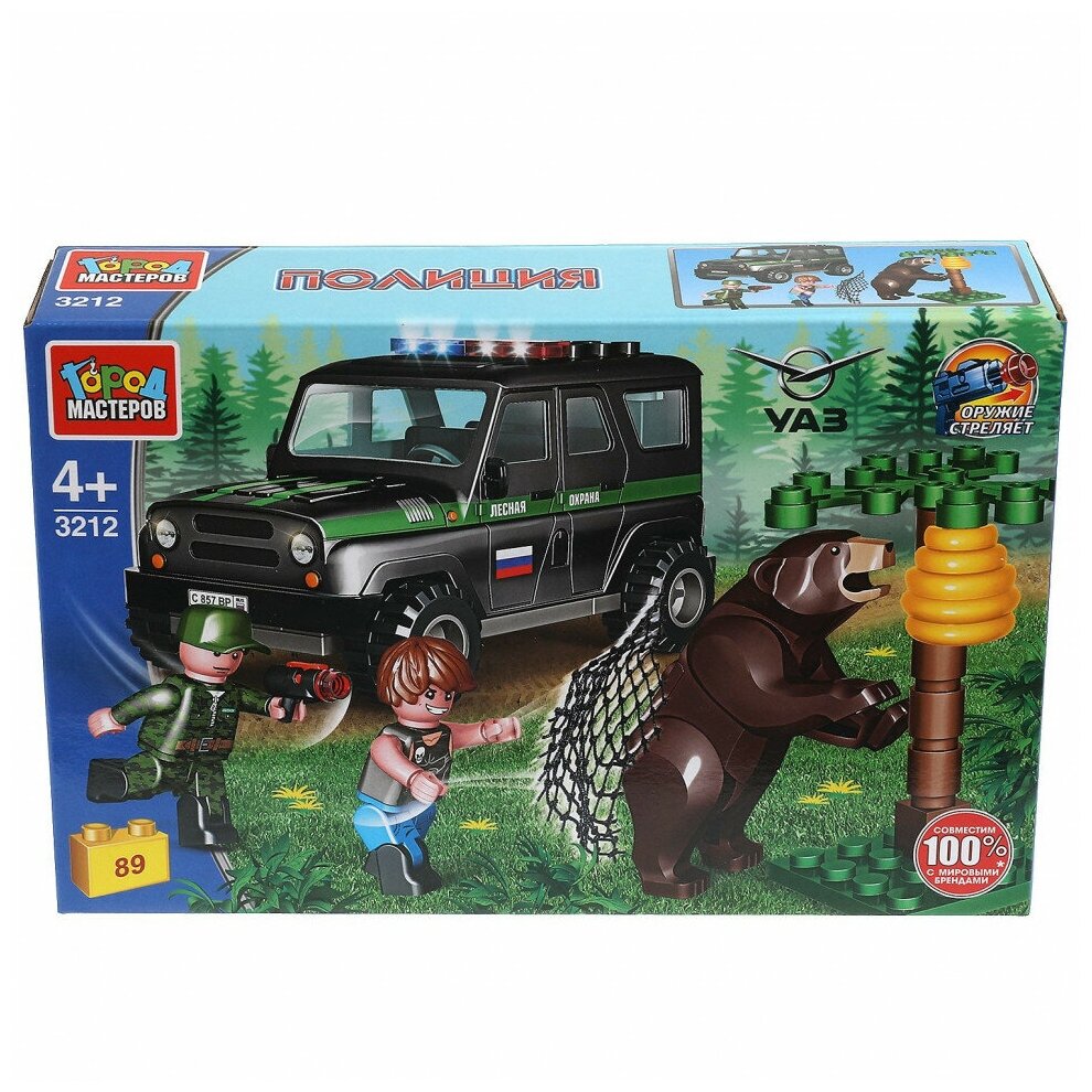 Лучшие цены. Конструктор «УАЗ Hunter. Лесная полиция» ТМ «Город мастеров» понравится маленьким защитникам природы. Особенности и комплектация: 89 деталей 3 фигурки оружие стреляет совместим с моделями конструкторов мировых брендов все детали легко и плотно соединяются между собой С помощью этого занимательного конструктора ваш ребёнок может собрать реалистичную модель машины лесной охраны и помочь отважному егерю спасти медведя от браконьера. Магазины в вашем городе.