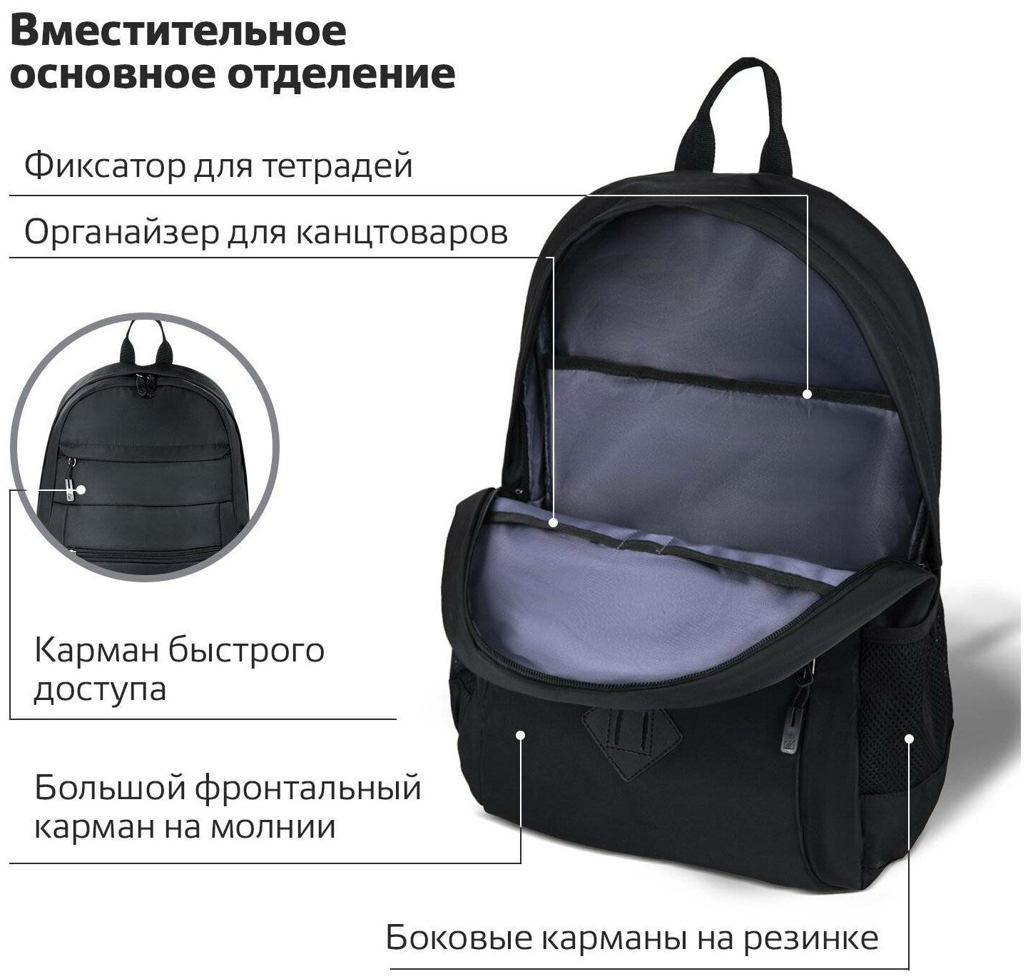 Рюкзак универсальный Brauberg эргономичный, черный, 43х30х13 см (270801)
