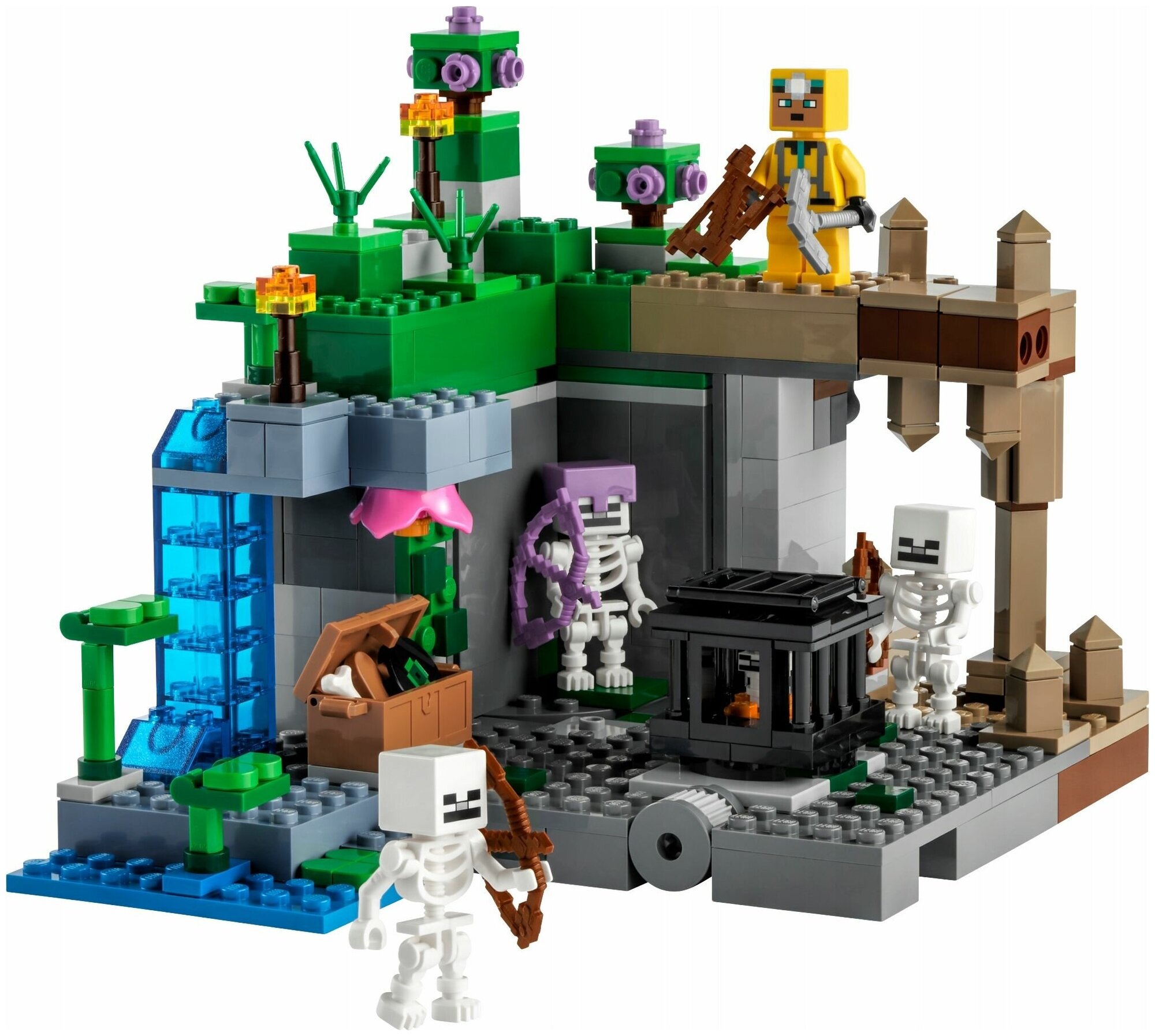 Лучшие цены. Используйте кирку, чтобы исследовать сталагмиты и сталактиты карстовой пещеры. Будьте осторожны – в подземелье внизу есть два скелета! Толкните сталагмит, чтобы камни обрушились на враждебных мобов, а потом спуститесь по твердолистам роскошную пещеру, чтобы сразиться со скелетами, стреляя из арбалета. Но будьте осторожны – вращение спаунера приводит к появлению еще одного скелета в зачарованных доспехах! LEGO® Minecraft® Подземелье скелета (21189). Магазины в вашем городе.