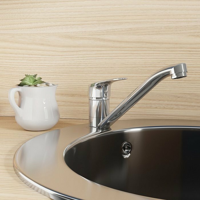 Лучшие цены. Смеситель для кухни Milardo Meal M06SB00M05. Изделие идеально впишется в любую кухню. Технические данные: - Цвет: хром; - Материал: латунь; - Керамическая картридж 35 мм; - Тип управления: однорычажный; - Вид установки: На сантехнику; - Тип подводки: G1/2; - Тип излива: фиксированный; - Аэратор: Пластиковый. В комплекте поставки: - Смеситель. Магазины в вашем городе.