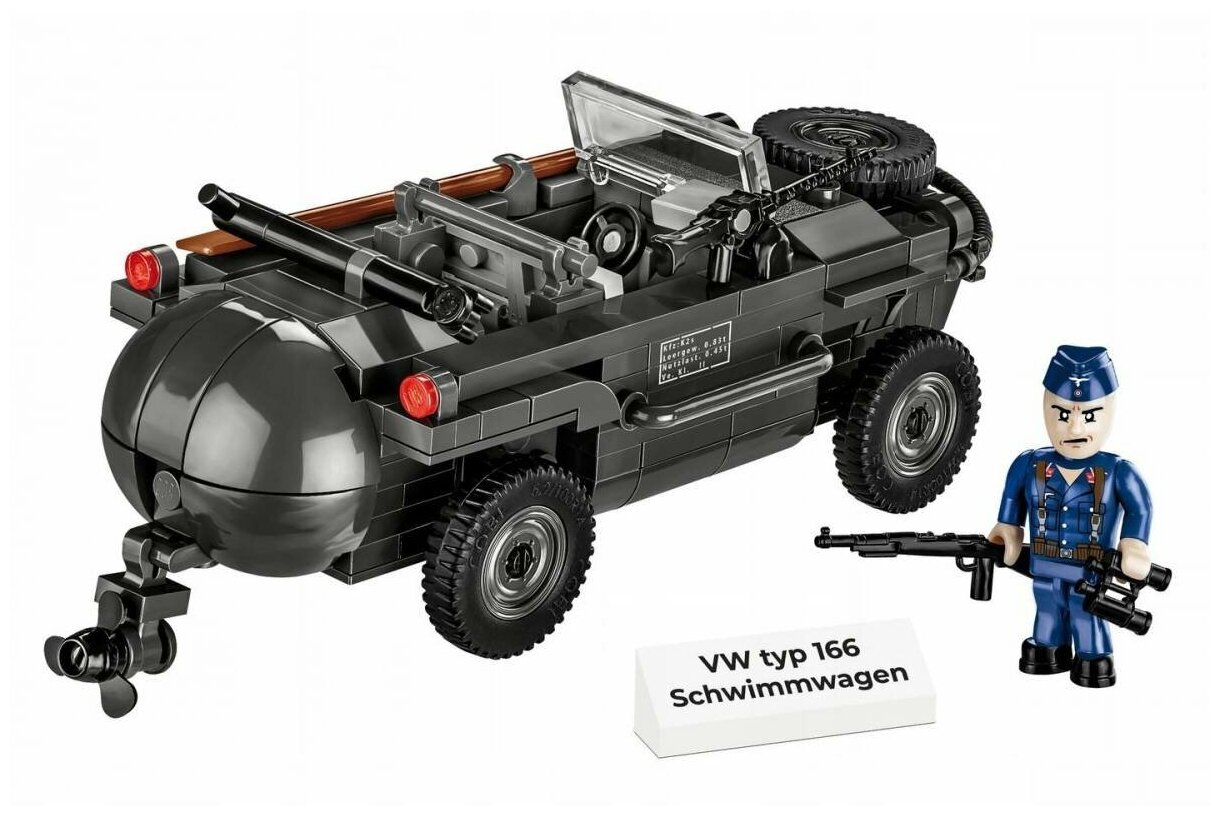 Лучшие цены. VW Type 166 Schwimmwagen - очень популярный немецкий плавучий внедорожник. Его производство приходится на 1942-1944 годы. Автомобиль-амфибия был оснащен герметичным обтекаемым кузовом, полным приводом, приспособленным для бездорожья, и турбиной, которая позволяет перемещаться по воде. Всего было выпущено более 14 000 экземпляров этого автомобиля. Из набора из 200 строительных блоков COBI вы построите военный плавающий легковой автомобиль VW Type 166 Schwimmwagen. Магазины в вашем городе.