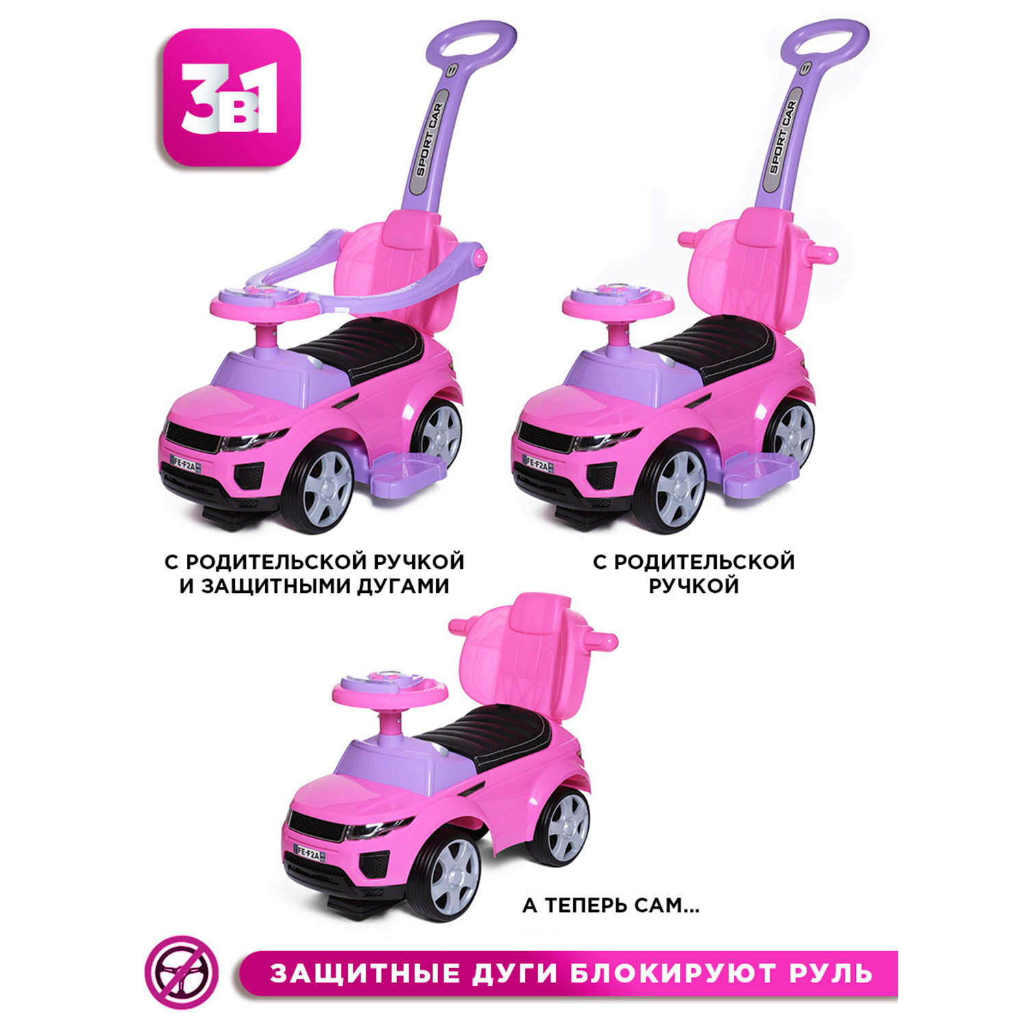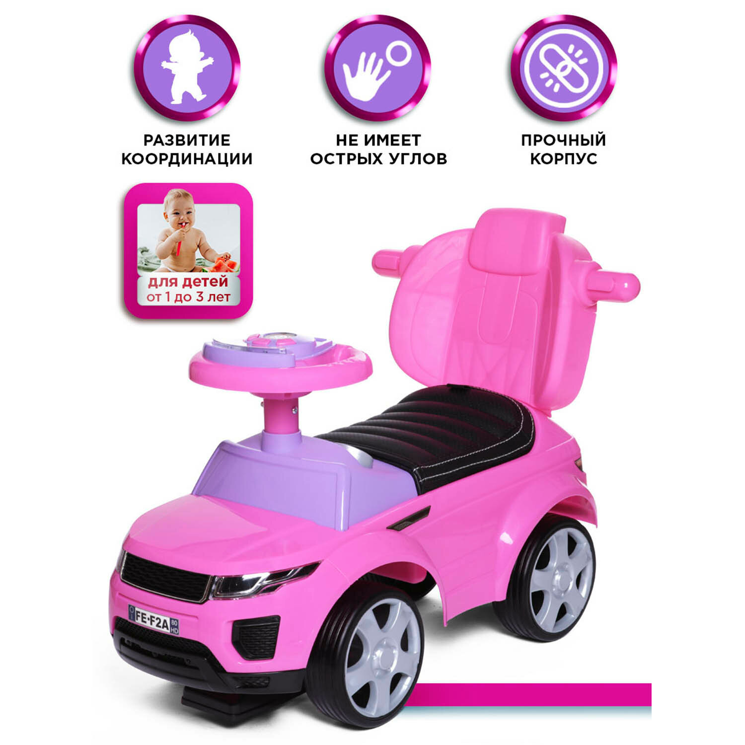 Каталка детская Sport car BabyCare (резиновые колеса, кожаное сиденье), розовый 4 800 ₽ Подробнее