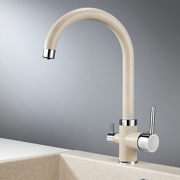 Кухонный смеситель высокий, с краном под питьевую воду GRANULA GR-2168 песок