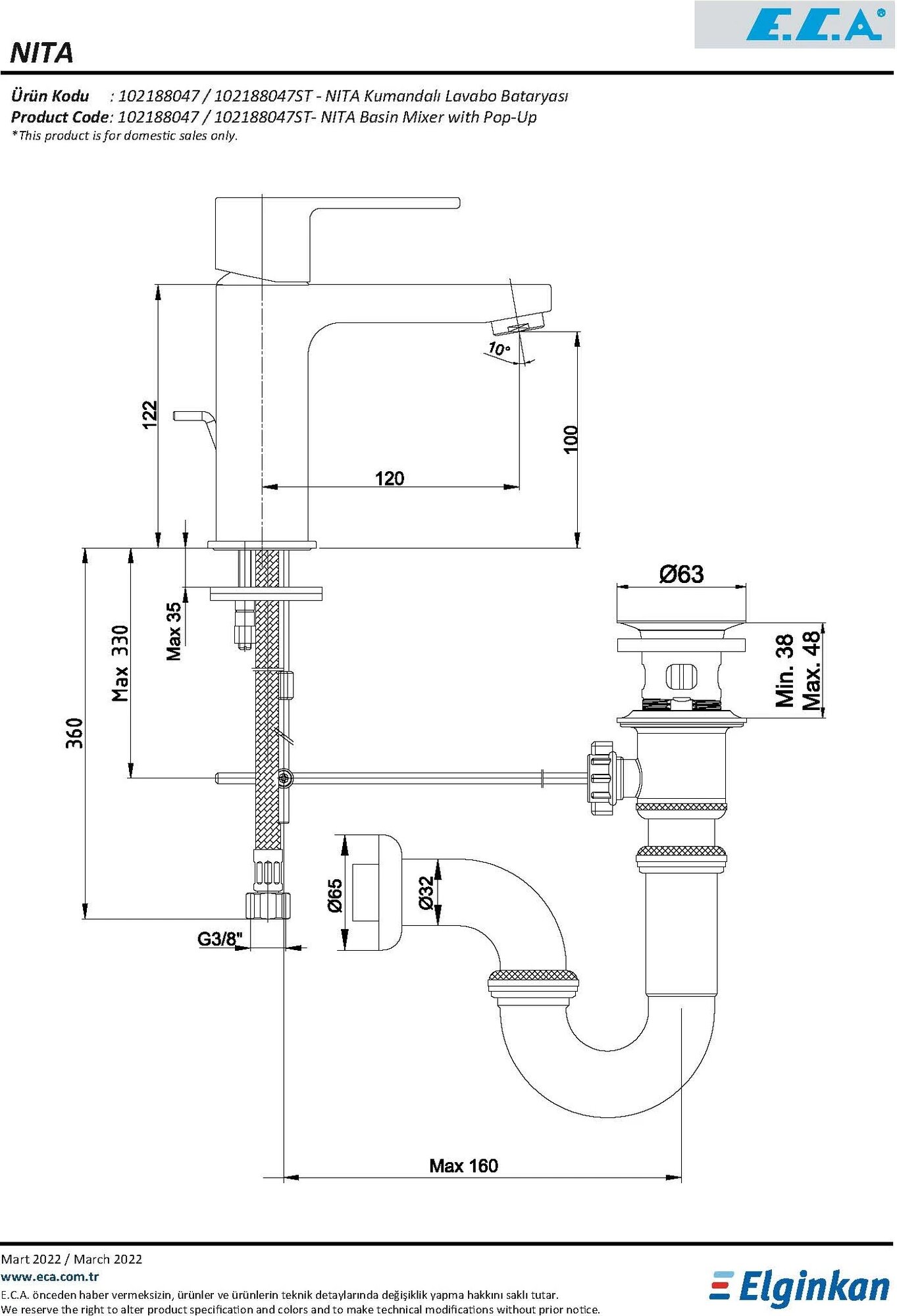 Смеситель для раковины E.C.A 102188047EX Nita Смеситель для раковины, хром