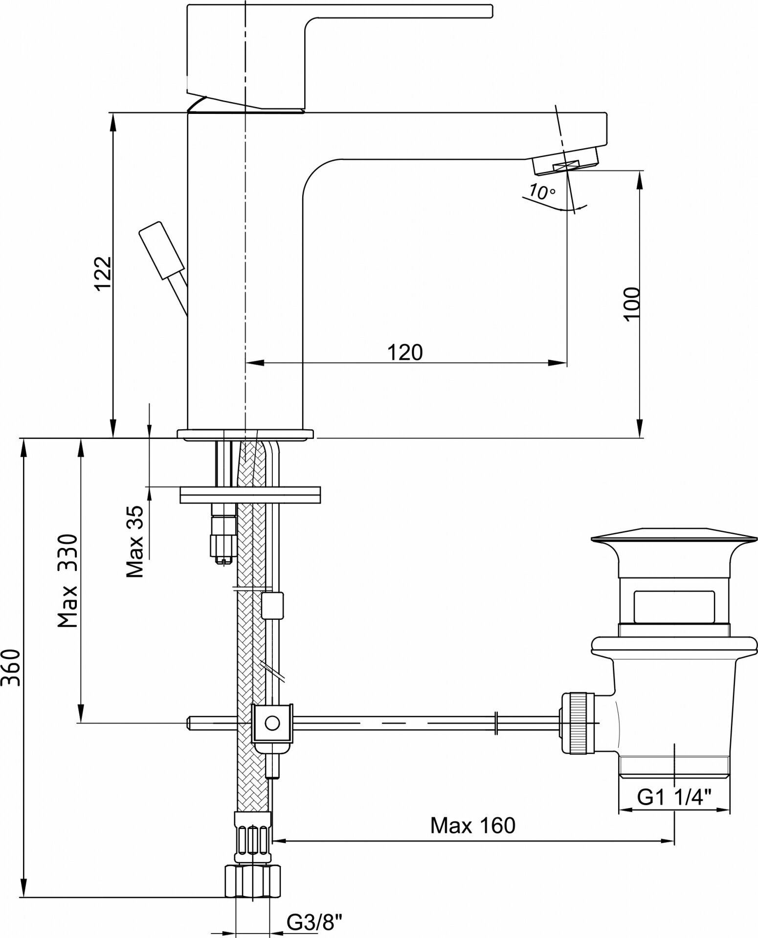 Смеситель для раковины с донным клапаном E.C.A. Nita 102188047EX