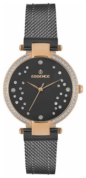 Лучшие цены. Женские часы. Коллекция Essence. Женственность, стиль и характер - эти часы будут очень красиво смотреться на вашей руке. Тип механизма: кварцевый. Калибр: Miyota. Корпус: сталь с розовым PVD покрытием. Циферблат: черный. Браслет: стальной миланский с PVD покрытием. Камень-вставка: циферблат и корпус украшены кристаллами Swarovski. Водозащита: 30WR. Стекло: минеральное. Габаритные размеры: D 34мм. Магазины в вашем городе.