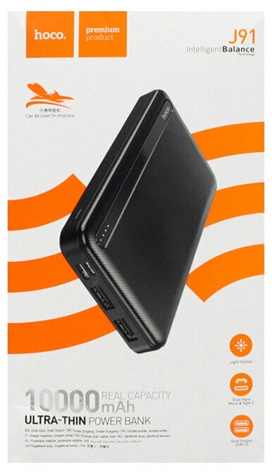 Лучшие цены. Универсальный внешний аккумулятор Hoco J91 подойдет для подзарядки большинства гаджетов. У него два выходных USB порта, которые могут работать одновременно. Сам же повербанк заряжается от micro-USB или Type-C. Четыре световых индикатора отображают уровень заряда. С таким устройством вам не придется думать о том, где зарядить смартфон в течение дня. Преимущества внешнего аккумулятора 10000мАч Hoco J91 - Черный Практичный и компактный Корпус Hoco J91 изготовлен прочных материалов: ABS-пластика и поликарбоната. Магазины в вашем городе.