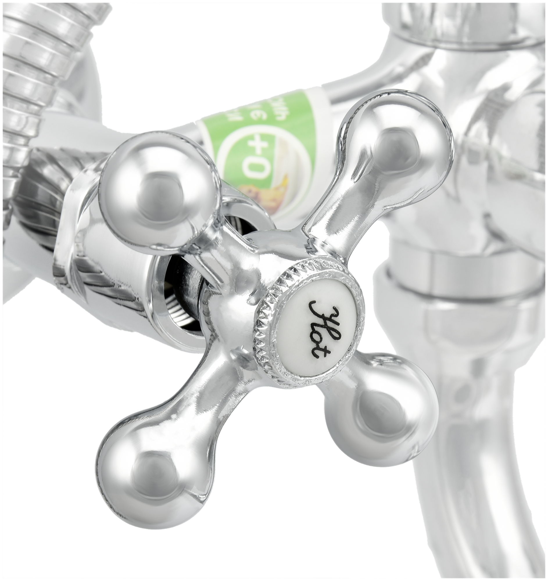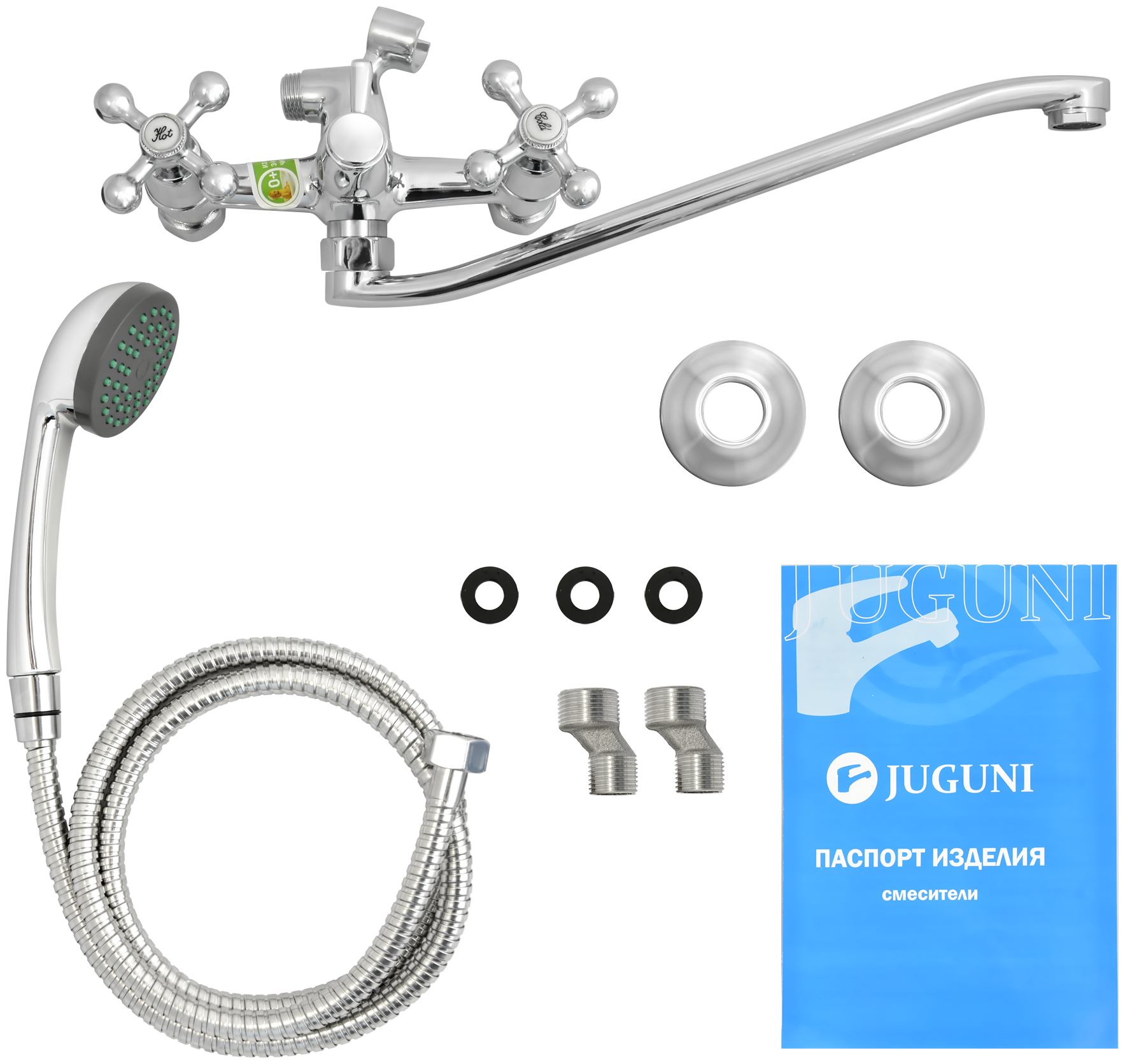 Смеситель ванно-душевой двуручный Juguni с металлическим шлангом и хром. лейкой, 0402.656A