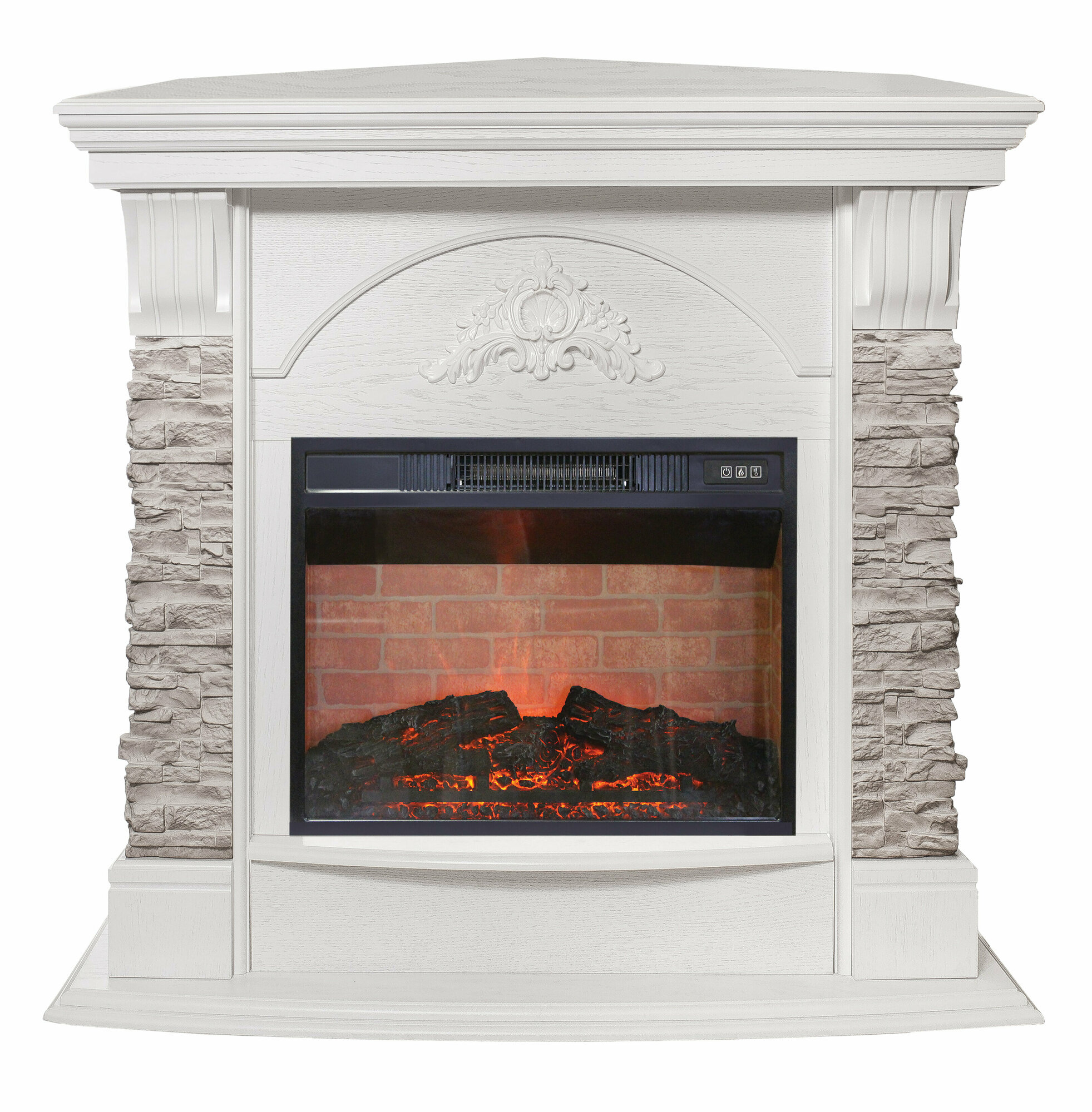 Лучшие цены. Каминокомплект Athena GR сочетает в себе строгость и утонченность, роскошь и сдержанность. Декорированные искусственным камнем колонны, обрамляющие топку по бокам, переходят в плавно изогнутые капители, поддерживающие вместительную столешницу. По центру расположена резная цветочная композиция. Качественный муляж сгоревших дров, которые находятся за плоским стеклом. Реалистичный эффект пламени. Два режима обогрева и защита от перегрева обеспечивают комфортное и безопасное использование очага. Магазины в вашем городе.