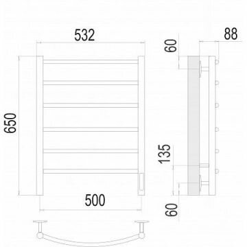 Классик (скрытая проводка) электрический полотенцесушитель TERMINUS (532 мм / 650 мм / 500 мм)