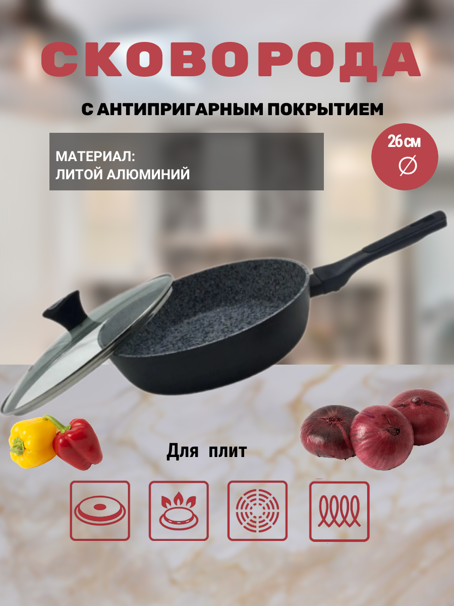 Сковородки Сковорода Kelli KL-4072G-26 / 26 см / алюминий / гранитное покрытие