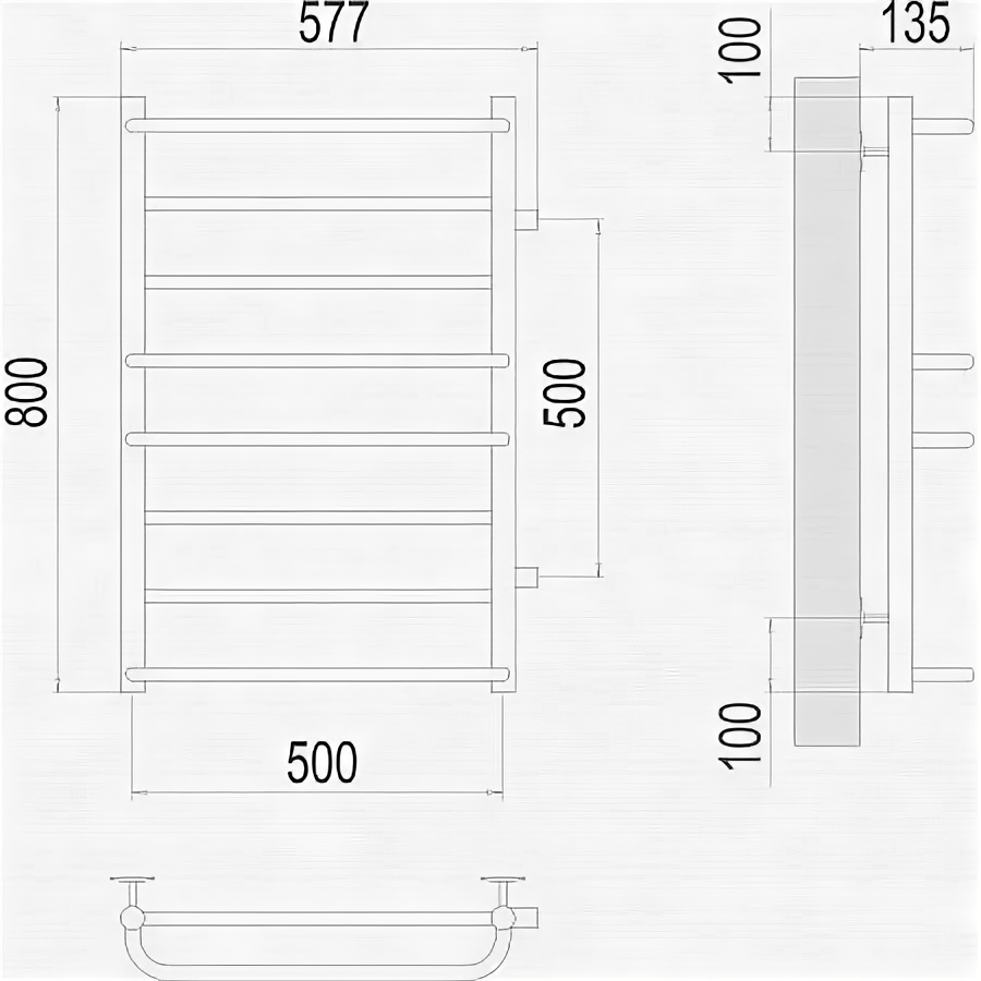 Евромикс с боковым подключением полотенцесушитель TERMINUS (577 мм / 800 мм / 500 мм)