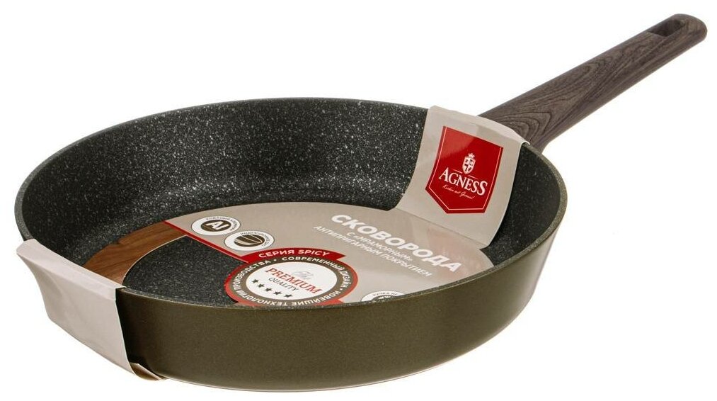 Сковорода для индукционной плиты AGNESS "SPICY" С "мраморным" антипригарным покрытием 28 х 5.8 см оливковый