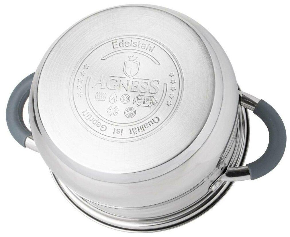 Кастрюля 4,6 л нержавеющая сталь со стеклянной крышкой, для индукционных плит Agness Classic, нержавейка 4,6 литра для газовой плиты