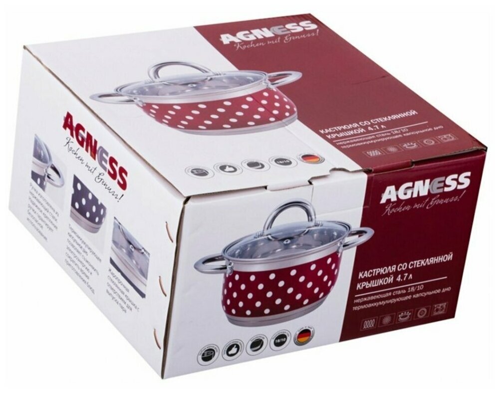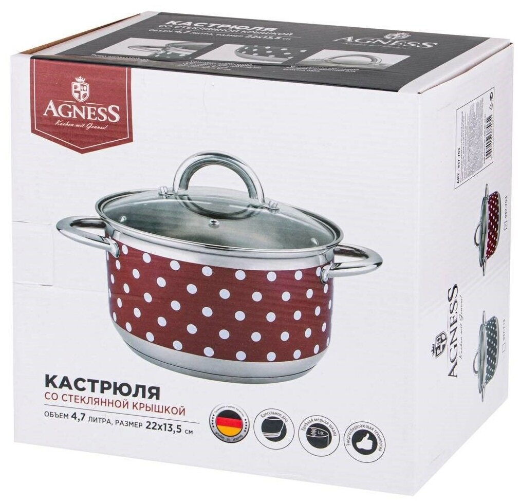 Лучшие цены. Кастрюля со стеклянной крышкой горошек нерж. сталь 4,7 л диаметр 22 см высота 12 см (кор 4ш Agness (937-703). Магазины в вашем городе.