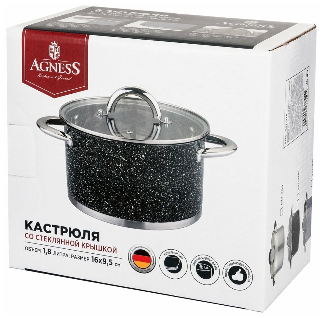 Лучшие цены. Кастрюля со стеклянной крышкой, нерж. сталь, 1,8л 16х9,5см Agness (937-310). Магазины в вашем городе.