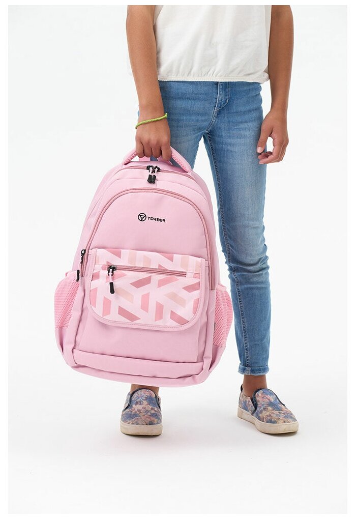 Рюкзаки Школьный рюкзак TORBER CLASS X T2743-22-PNK, розовый с орнаментом, полиэстер 900D, 45 x 30 x 18 см, 17 л
