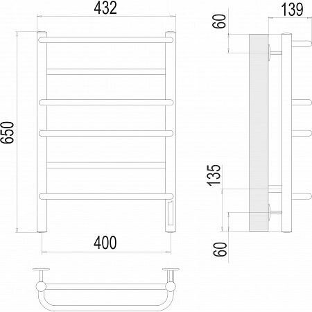 Полотенцесушитель электрический TERMINUS Евромикс П6 400х650 электро