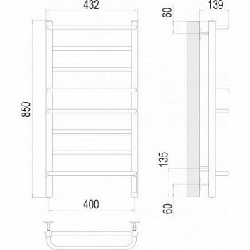 Евромикс (скрытая проводка) электрический полотенцесушитель TERMINUS (432 мм / 850 мм / 400 мм)