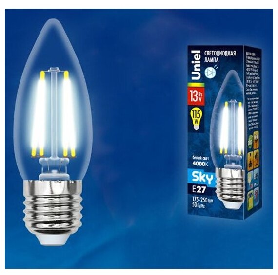 Лампочка Uniel Led-c35-13w/4000k/e27/cl Pls02wh Лампа светодиодная UL-00005902 .