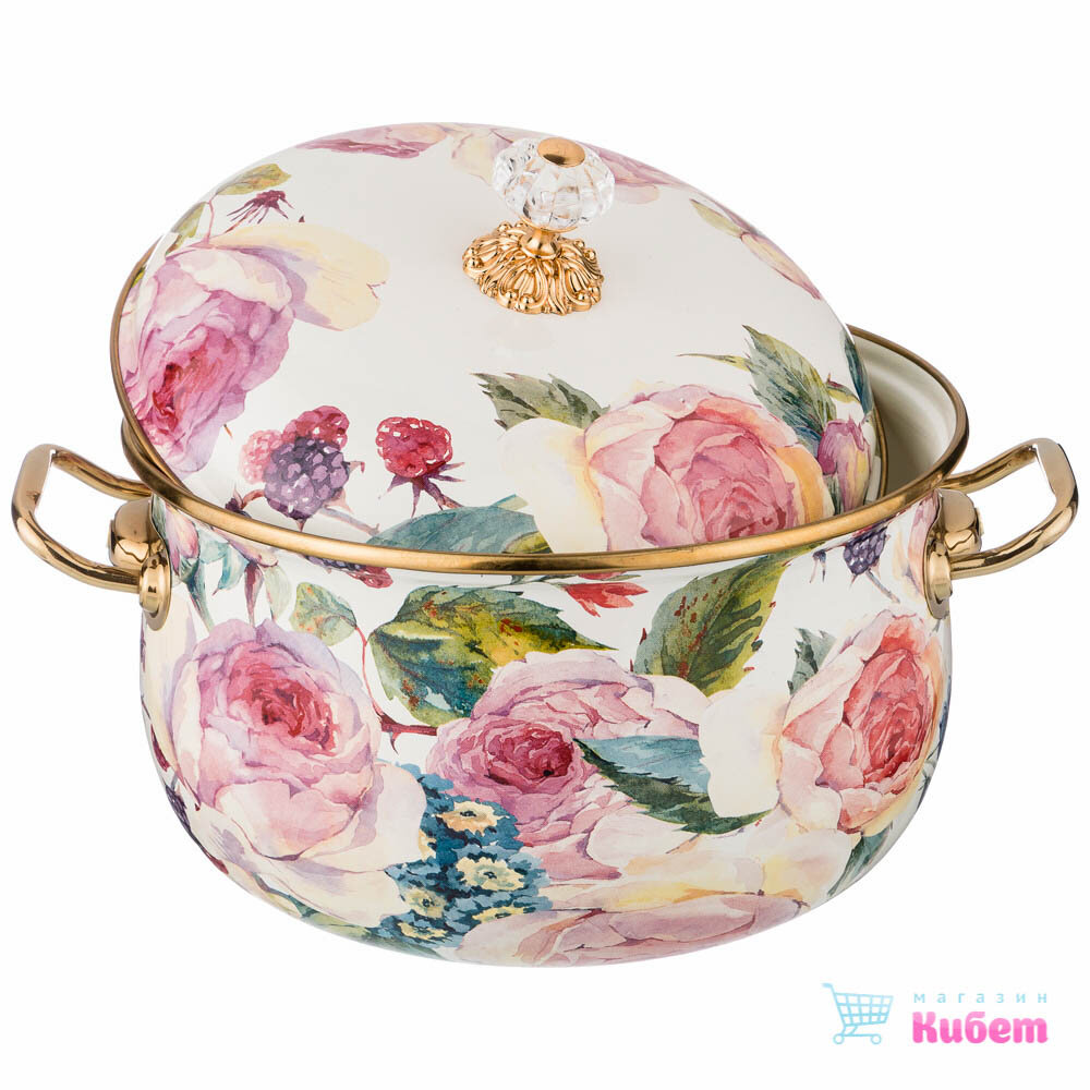 Кастрюля эмалированная с крышкой Vintage Flowers Объем: 3800 мл