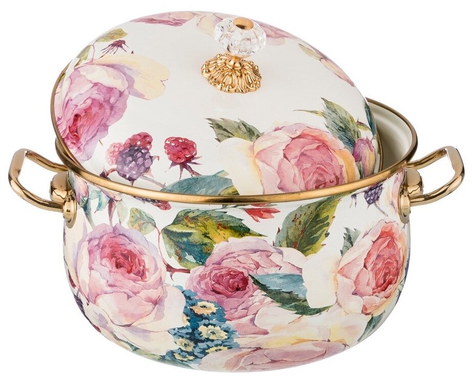 Кастрюля эмалированная с крышкой Vintage Flowers Объем: 6100 мл