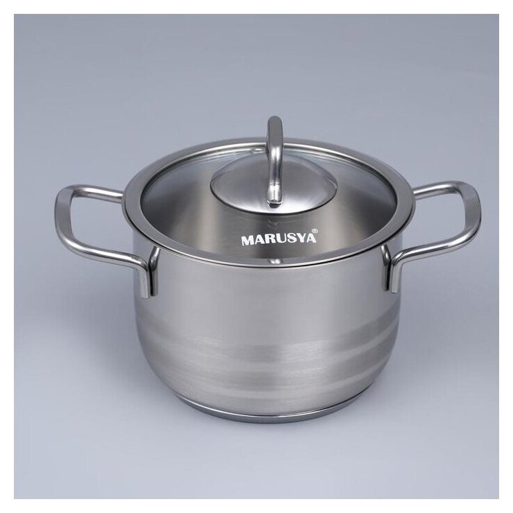 Кастрюля для плиты 3 литра из нержавеющей стали с крышкой Marusya