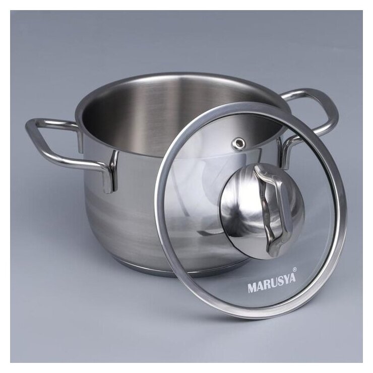 Кастрюля из нержавеющей стали с крышкой Marusya 3л, 18х12 см для всех видов плит